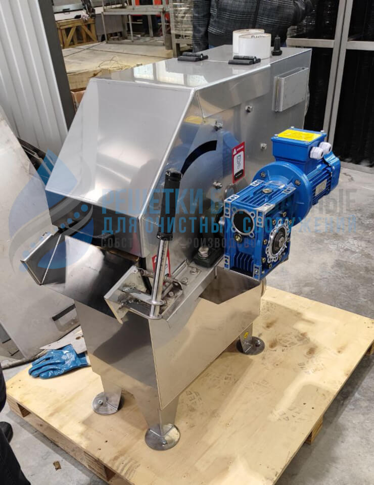 Очистка сита от отходов осуществляется с помощью статического скребка. Все крупные включения попадают в камеру приема шлама и выводятся из нее самотеком или с помощью отжимного шнекового пресса.