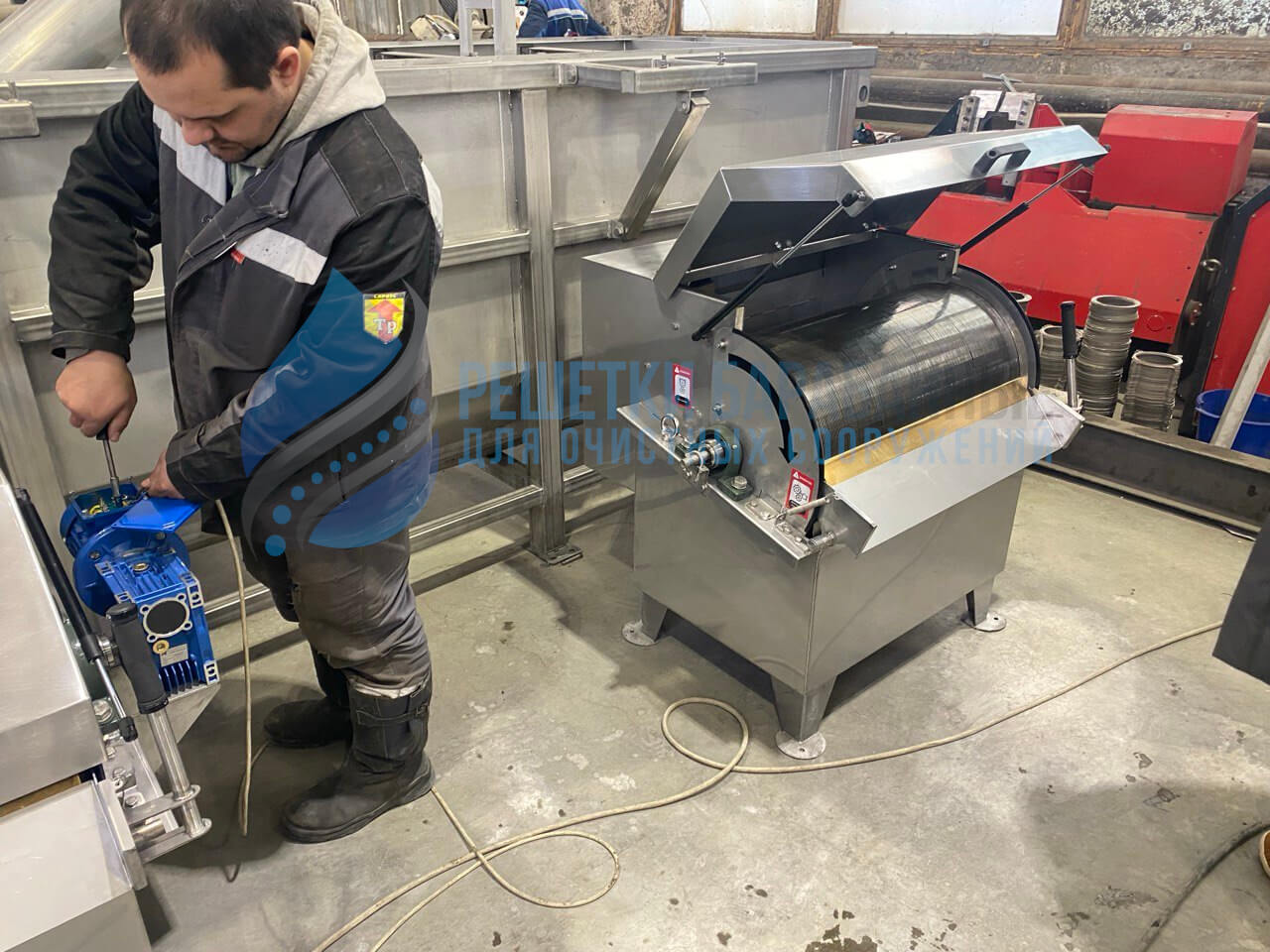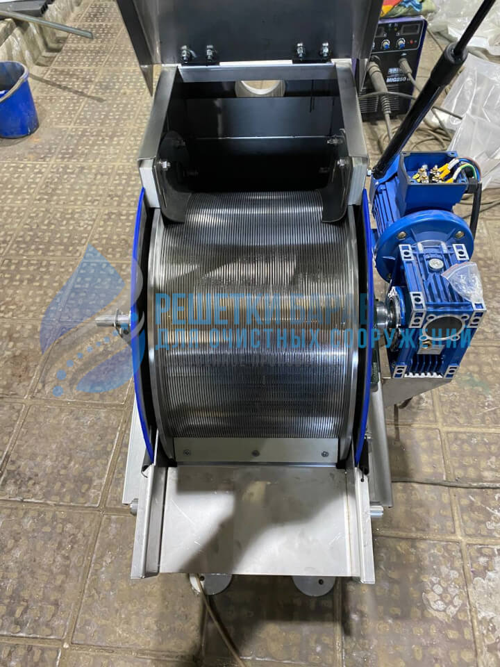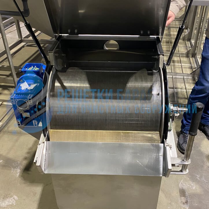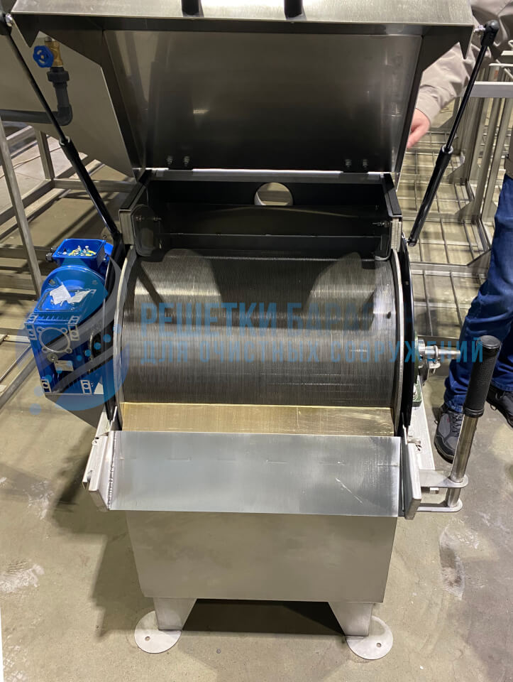 Фильтрующий барабан изготовлен из нержавеющей стали методом спиральной намотки трехгранного профиля поверх продольных ребер. Основание сечения профиля образует поверхность барабана. Конструктивные особенности барабаного сита позволяют задерживать включения с размером, превышающим прозор решетки, на его поверхности, и в то же время препятствуют кольматации его изнутри.