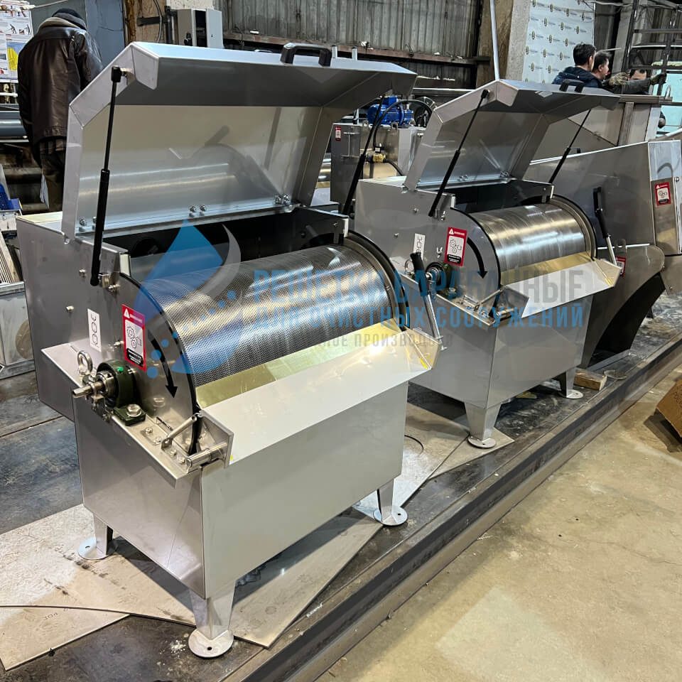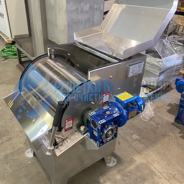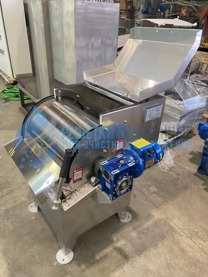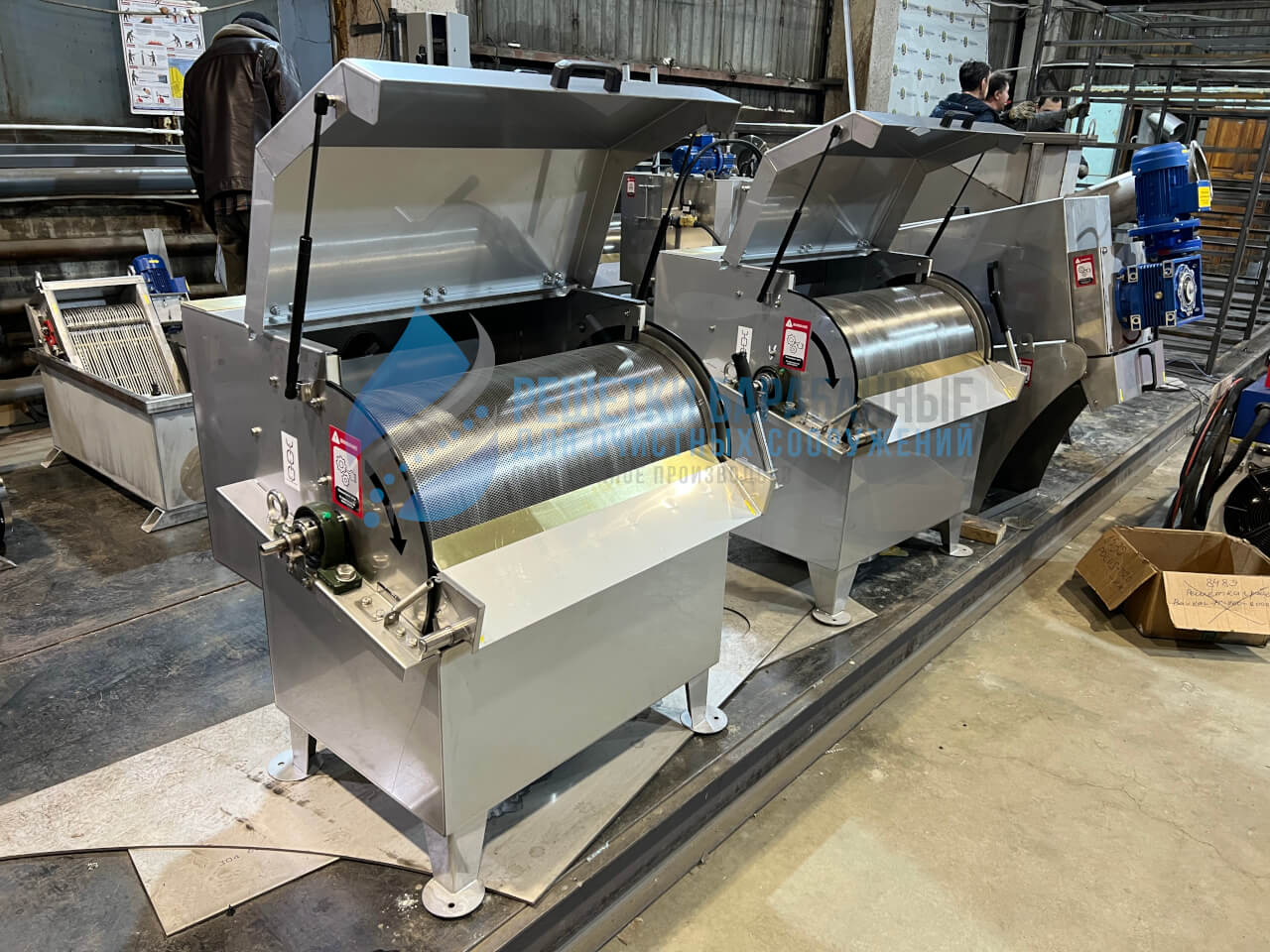 сито в виде барабана с отверстиями ячеек от 0,15 до 5 мм, оснащенное ротором и скребками для очистки от загрязнений;