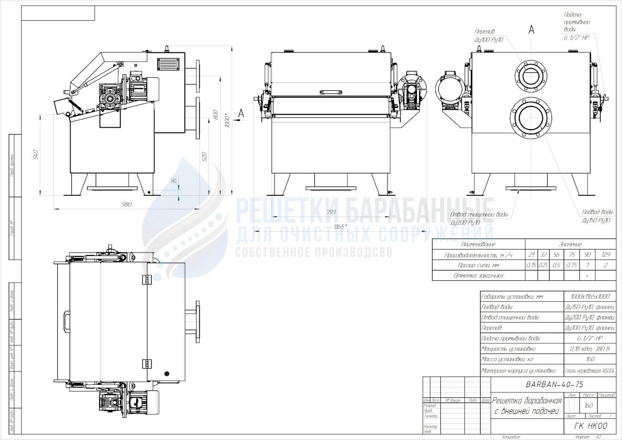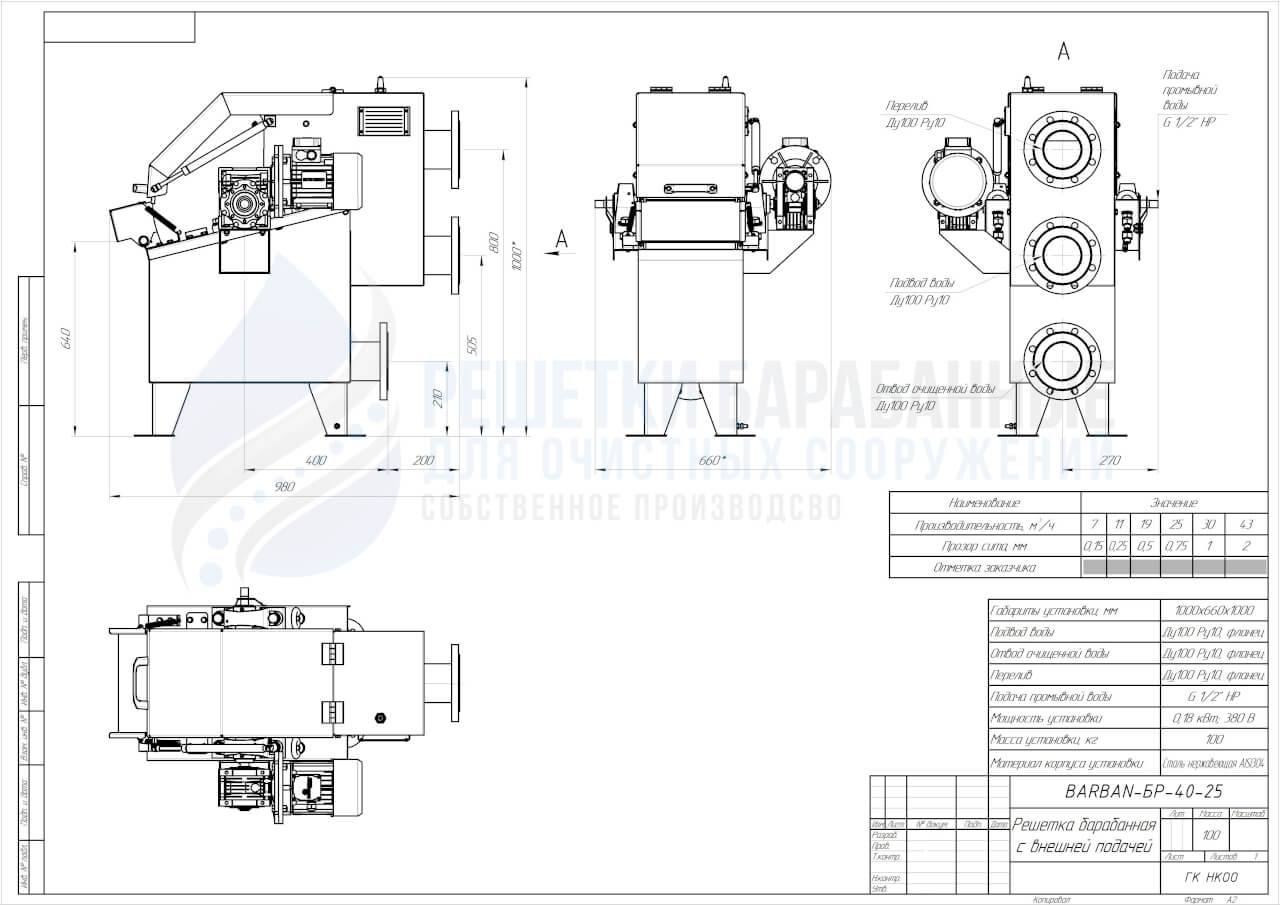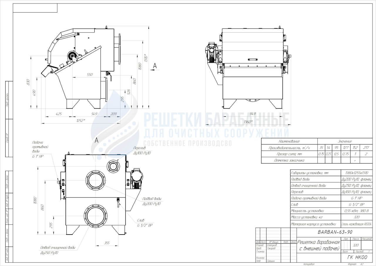 Барабанная сито (решетка) BARBAN предназначена для предварительной очистки сточных вод от крупных загрязнений. Как правило данное оборудование ставится в начале линии комплекса очистных сооружений.